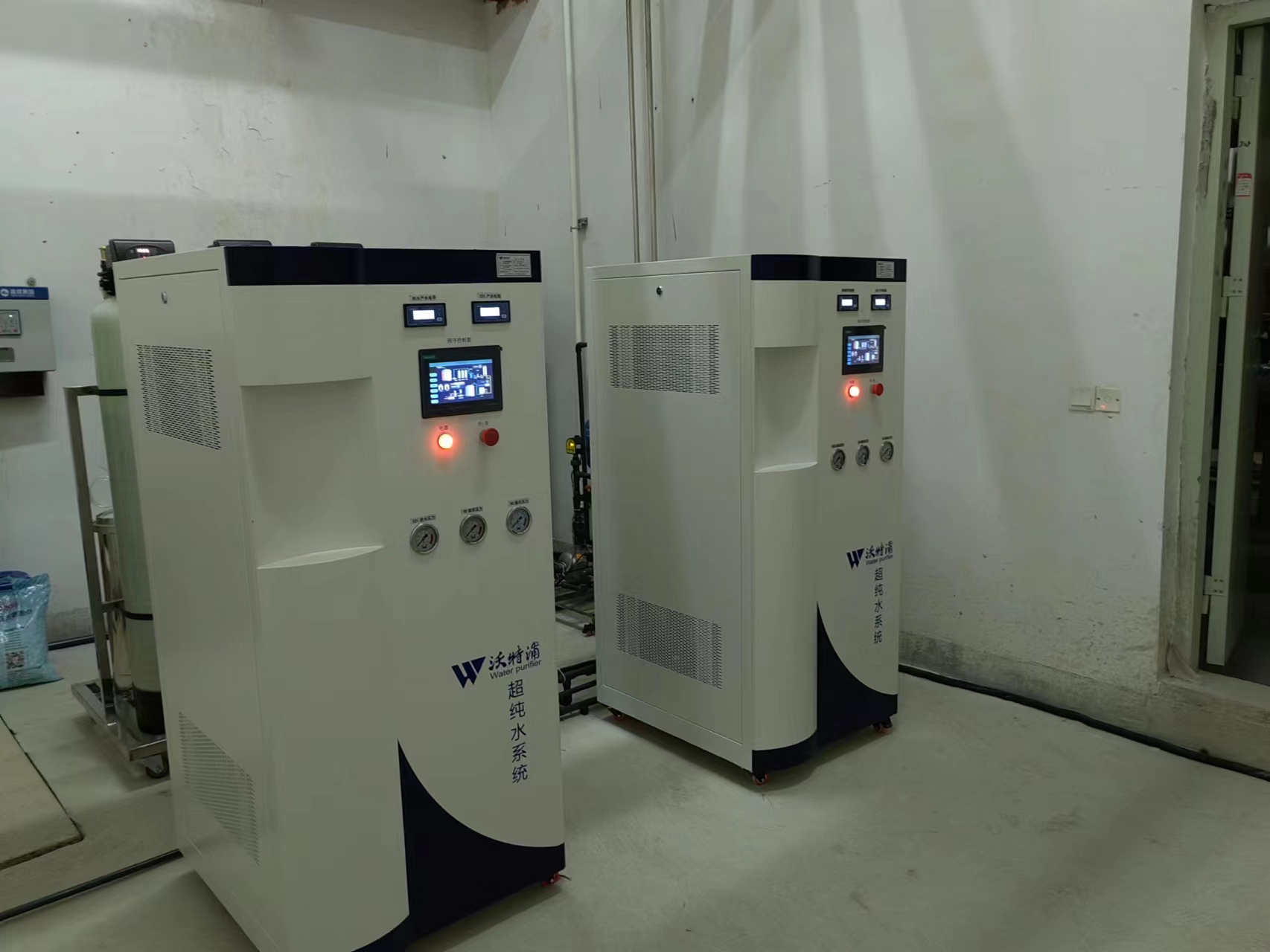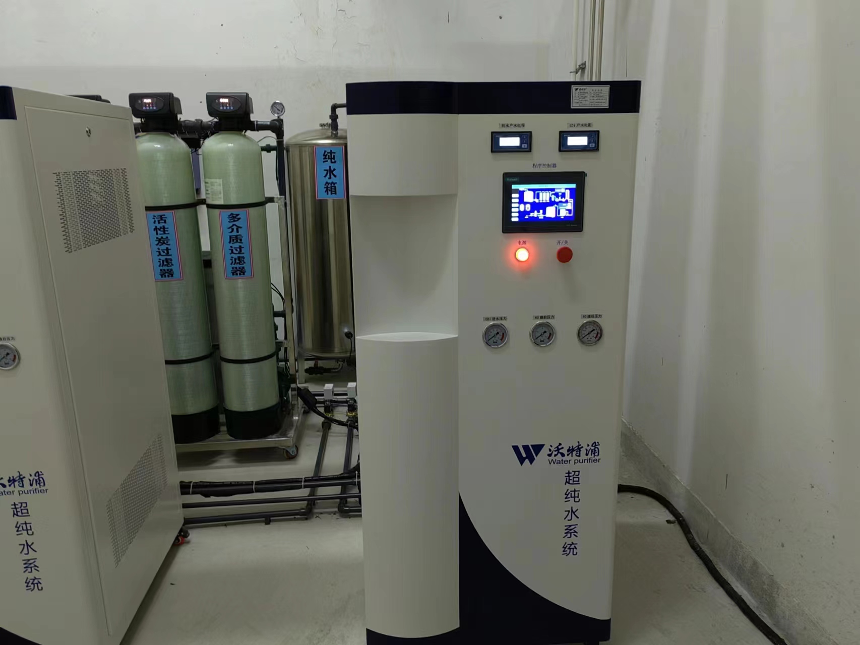 系統(tǒng)由中央純水設(shè)備、純水系統(tǒng)管網(wǎng)、終端純水取水點(diǎn)、終端超純水設(shè)備組成,系統(tǒng)主機(jī)采用一備一用,可同時(shí)制水、不間斷供水,純水電導(dǎo)率≤5μS/cm(25℃)達(dá)到三級水水質(zhì)標(biāo)準(zhǔn),超純水電阻率≥18 M?.cm@25℃,達(dá)到高純水水質(zhì)標(biāo)準(zhǔn)。