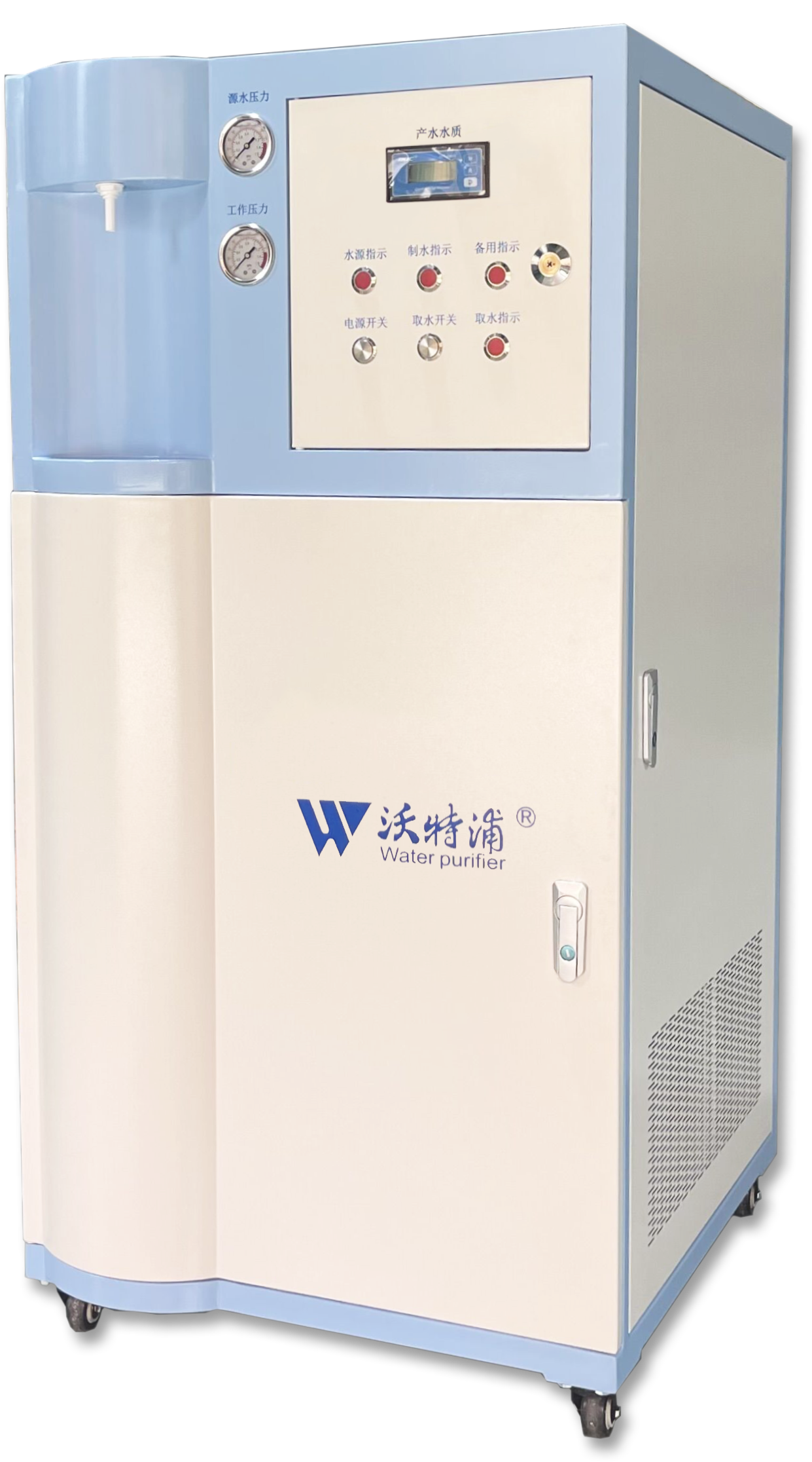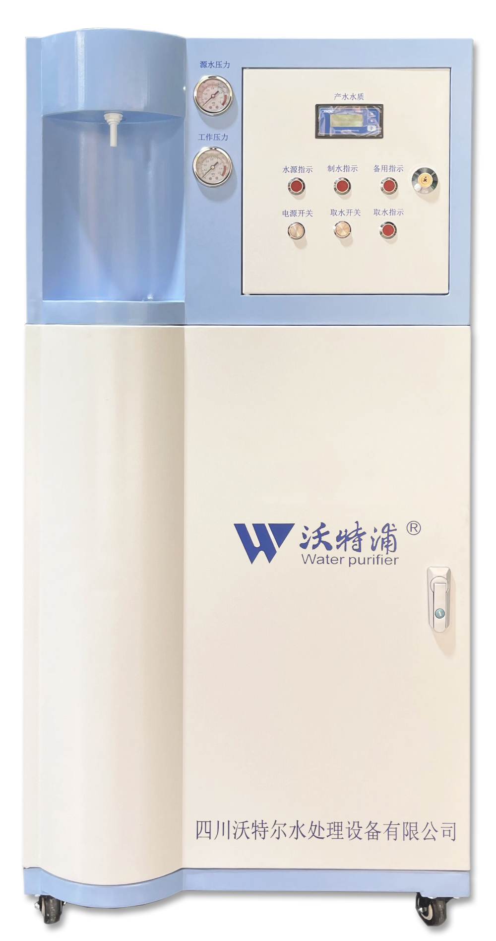 ★全自動控制設(shè)備運行,具有預(yù)處理系統(tǒng)自動沖洗及再生功能,純水箱液位和純水輸送自控功能,符合GLP安全要求;